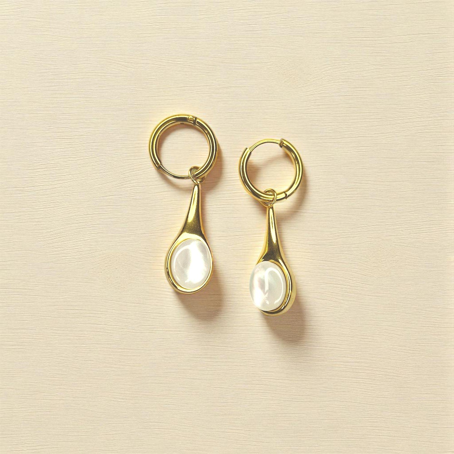 Style these earrings with a simple white tee and jeans for a chic, casual look, or pair them with a flowing maxi dress for a bohemian vibe. They also make a perfect complement to a little black dress, adding a touch of understated elegance. These Gold and Mother-of-Pearl Drop Earrings are more than just an accessory; they are a statement of your refined taste and appreciation for timeless beauty.